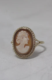 Cameo rings became popularised by Queen Victoria of England during the 19th Century and have traditionally featured profiles of beautiful women or mythical creatures. Inspired by strong promotion of female empowerment and the creation of beauty the cameo stones selected depict faces of woman with beauty but not always in the conventional way. The gold accompanied by the cream silhouette on orange shell provide a perfect colourway to suit all skin type.